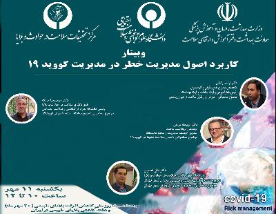 اخبار > وبینار « کاربرد اصول مدیریت خطر در مدیریت کووید 19 »، 11 مهرماه برگزار می شود