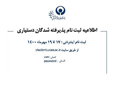 - اطلاعیه ثبت نام حضوری پذیرفته شدگان آزمون دكتري تخصصي سال ۱۴۰۲