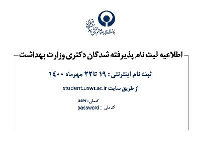 اخبار > قابل توجه پذیرفته شدگان مقطع دکتری سال 1401 ـ 1400ـ وزارت بهداشت