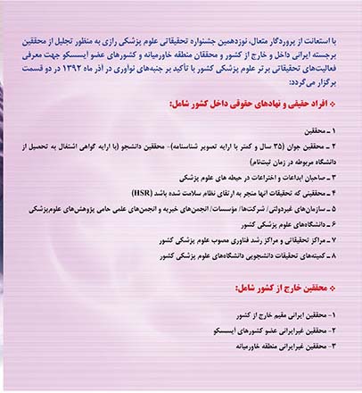اخبار > نوزدهمین جشنواره تحقیقاتی علوم پزشکی رازی