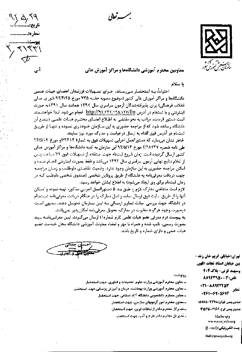اخبار > تسهیلات فرزندان اعضای هیات علمی برای پذیرفته شدگان آزمون سراسری سال 1392