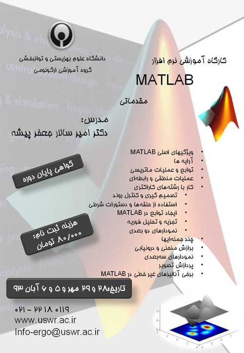 اخبار > گروه آموزشی ارگونومی برگزار می کند: کارگاه آموزشی نرم افزار MATLAB مقدماتی