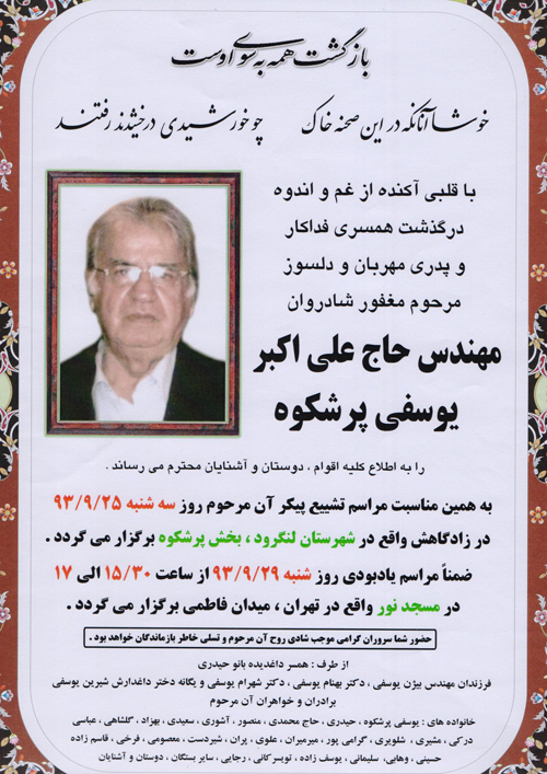 اخبار > مراسم یادبود پدر بزرگوار دکتر یوسفی