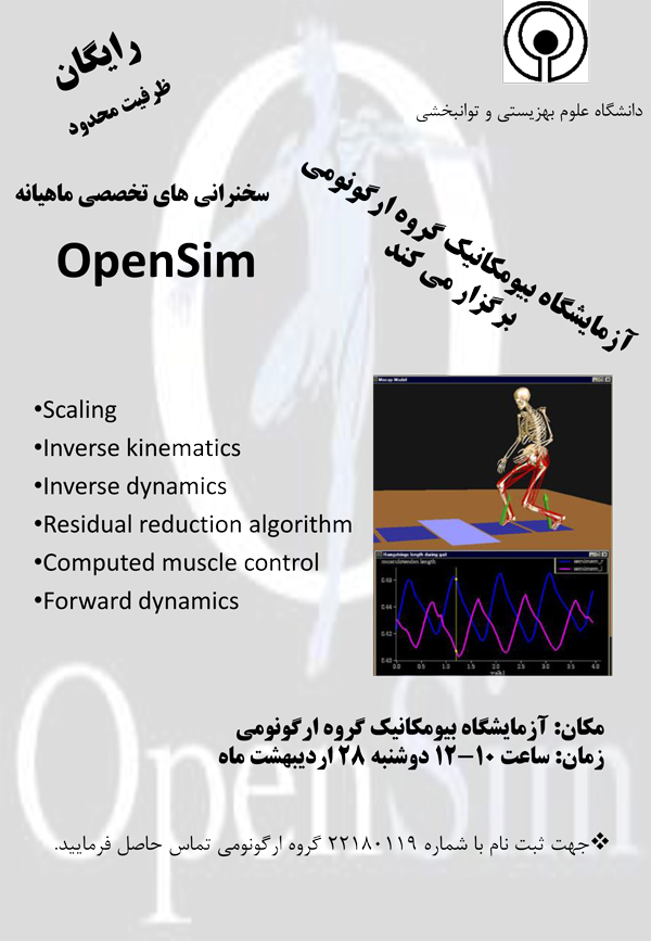 اخبار > آزمایشگاه بیومکانیک گروه ارگونومی برگزار می کند: کارگاه تخصصی OpenSim
