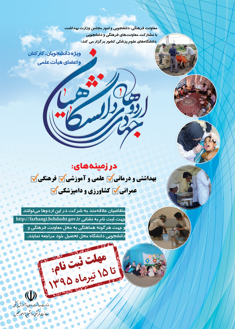 اخبار > معاونت فرهنگی، دانشجویی و امور مجلس وزارت بهداشت برگزار می کند: اردوهای جهادی دانشگاهیان