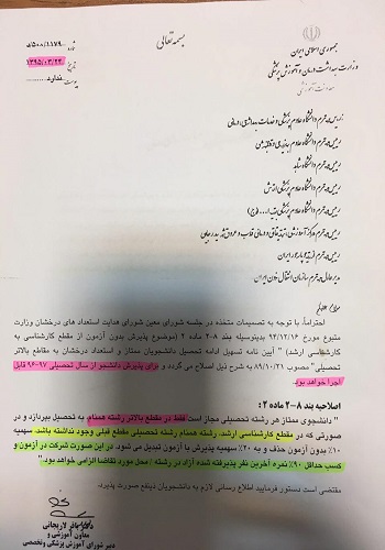 اخبار > اصلاح آئین نامه تسهیل ادامه تحصیل دانشجویان ممتاز و استعداد درخشان به مقاطع بالاتر تحصیلی